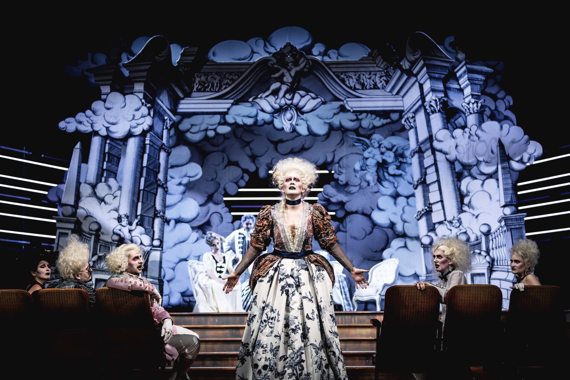 "Two dozen actors and actresses are required, a huge ensemble. It would be unfair to single them out, but nevertheless: Iida Antola is a Marie Antoinette with finely tuned diva aplomb and a rich voice..."
